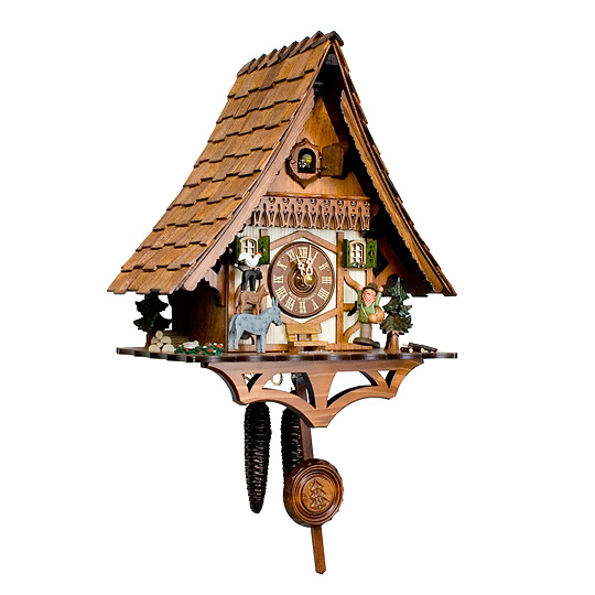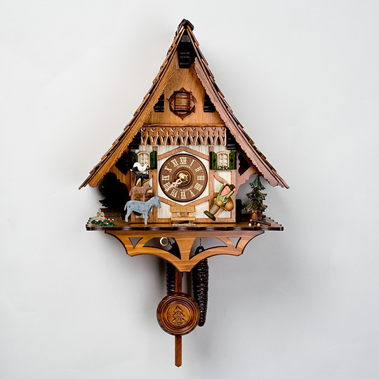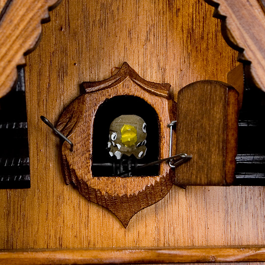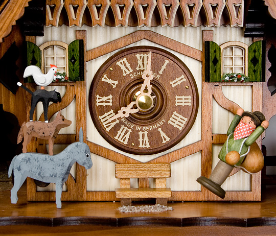 「カッコー」の時報に合わせ、小窓から鳥が出てきて、動物と泥棒が動きます。「ボーン」という鐘の音はありません。